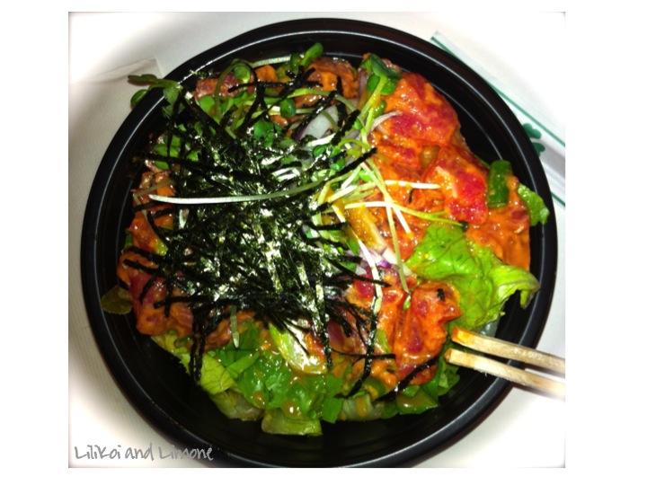 The hubs and I spent most of the day today in Waikiki visiting with friends who are here on holiday. We enjoyed some mai-tais with lunch at the beachside restaurant Shore Bird, then stopped at the Yard House for some brews before watching a gorgeous sunset from Waikiki Beach. A few hours later as we were heading back over the hill to the Windward side, we decided to stop at Pa’ina Cafe for something to nosh on. I opted for the salad poke bowl and the hubs got a nicoise salad with seared ahi on top. Both were delicious, the ahi was fresh and the dressings were very flavorful. The staff at Pa’ina Cafe were courteous and friendly, and we will definitely be back to try many of the other things on their menu.